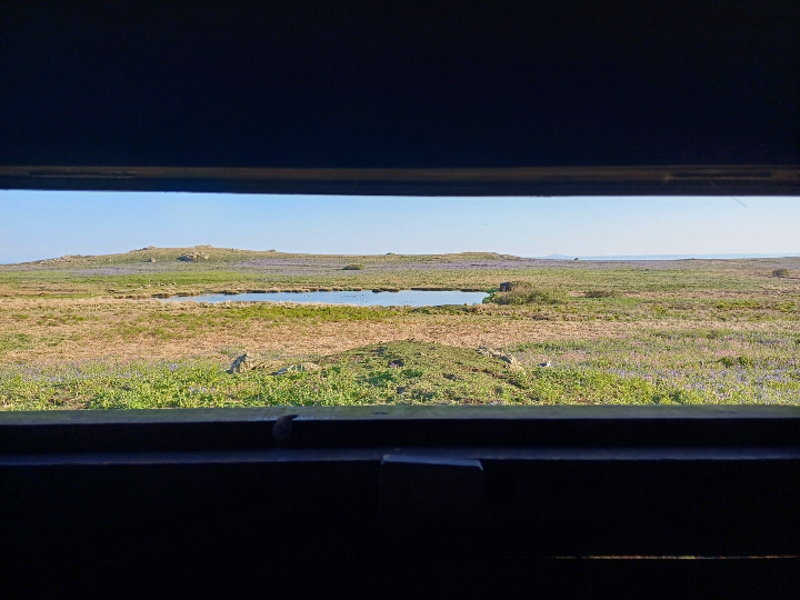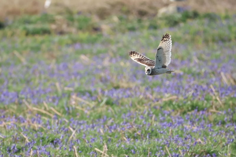 Om 6uur was ik weer wakker en kon mijn dag beginnen. Toen ik naar buiten ging vloog er recht voor het hostel een velduil, ook goedemorgen! Beter kan je dag niet beginnen. Terwijl Marleen nog lekker lag te slapen heb ik mijn camera gepakt en ben ik bij de boshyacinten gaan zitten. Met de hoop dat er een velduil over de paarse bloemenvelden zou vliegen. De tijd was ik een beetje kwijtgeraakt, ik denk dat ik er meer dan 3 uur heb gezeten. Het eerste uur was er nog geen activiteit maar het wachten werd beloond. De uil is meerdere keren langs gevlogen, over de bloemenvelden, opzoek naar onder andere Skomer woelmuizen*. Het was een geweldige ervaring om de velduil te zien in zijn natuurlijke habitat en dit van zo dichtbij mee te mogen maken, wauw! We hebben er geen seconde spijt van dat we op het eiland zijn gebleven, we zijn eigenlijk heel blij dat we nog een dag extra hebben! We kregen net nog een korte update dat de boten morgen (zaterdag) definitief niet varen en dat het er voor zondagochtend hoopvol uitziet.